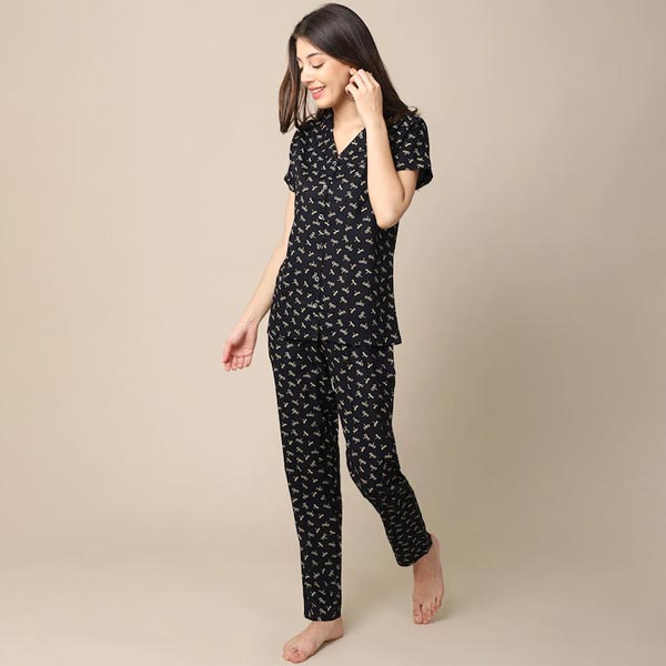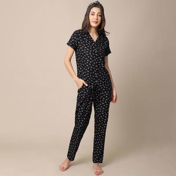 SleepwearYou can simply unfurl yourself into the embrace of this night suit to unwind after a long day at work. This one is crafted with the softest fabric to leave you feeling light and airy.