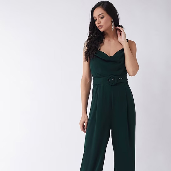 JumpsuitsGreen solid basic jumpsuit, has a shoulder straps, belt at the waistline with straight cut bottoms