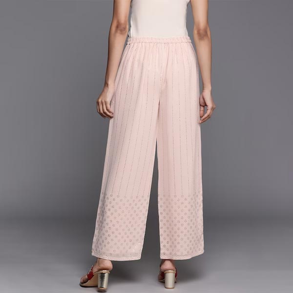 Women Peach-Coloured Embellished Georgette Ethnic Palazzos